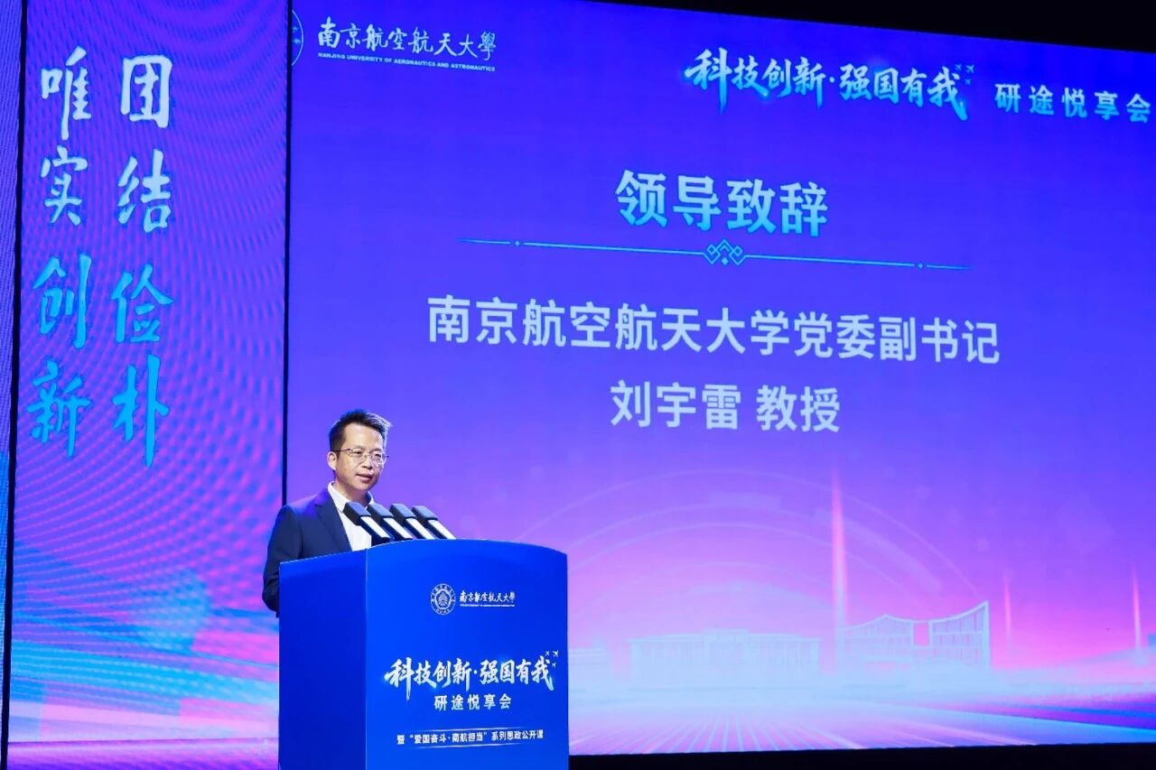11月25日下午,由優(yōu)秀研究生導(dǎo)學(xué)團(tuán)隊(duì)代表主創(chuàng)的“科技創(chuàng)新·強(qiáng)國(guó)有我”研途悅享會(huì)暨“愛國(guó)奮斗·南航擔(dān)當(dāng)”系列思政公開課在將軍路校區(qū)舉行。校黨委副書記劉宇雷,黨委常委、宣傳部部長(zhǎng)徐川出席活動(dòng),相關(guān)職能部門領(lǐng)導(dǎo)、學(xué)院領(lǐng)導(dǎo)、研究生導(dǎo)師代表、2025級(jí)研究生代表和優(yōu)秀本科生代表共計(jì)五百余人齊聚一堂,聆聽南航研究生潛心科研、矢志報(bào)國(guó)的動(dòng)人故事。