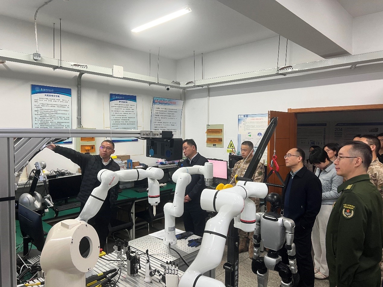 會(huì)前,劉小平、李鑒峰一行參觀(guān)了東部戰(zhàn)區(qū)總醫(yī)院腦機(jī)研究病房、南航機(jī)電學(xué)院機(jī)器人與具身智能實(shí)驗(yàn)室。江北新區(qū)科創(chuàng)局、浦口區(qū)科技局、浦口經(jīng)濟(jì)開(kāi)發(fā)區(qū)、浦口高新區(qū),東部戰(zhàn)區(qū)總醫(yī)院有關(guān)科室,我校發(fā)規(guī)處、科研院、機(jī)電學(xué)院、人工智能學(xué)院等單位負(fù)責(zé)同志和相關(guān)科研團(tuán)隊(duì)參加調(diào)研交流。